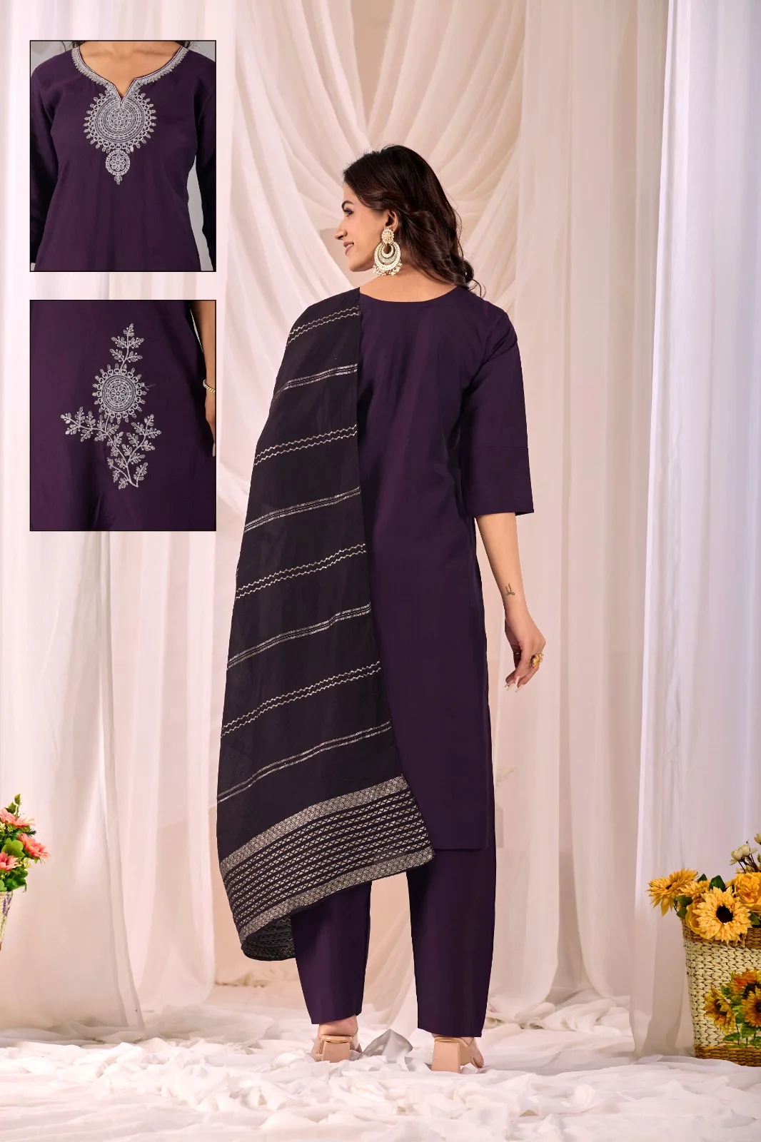 Be the first to review “Purple – Women Pure Cotton Kurta Palazzo Dupatta Set”